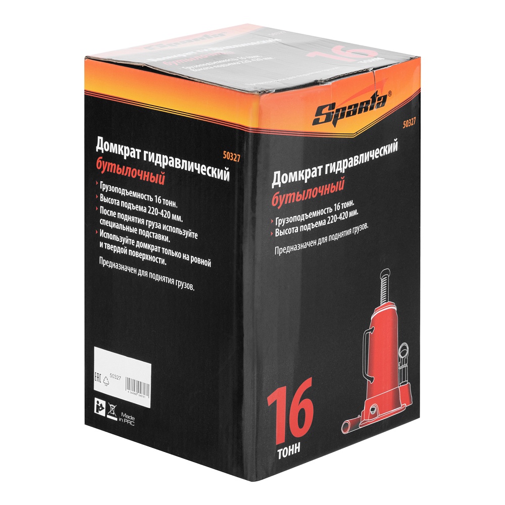 Домкрат гидравлический бутылочный, 16 т, h подъема 220-420 мм Sparta
