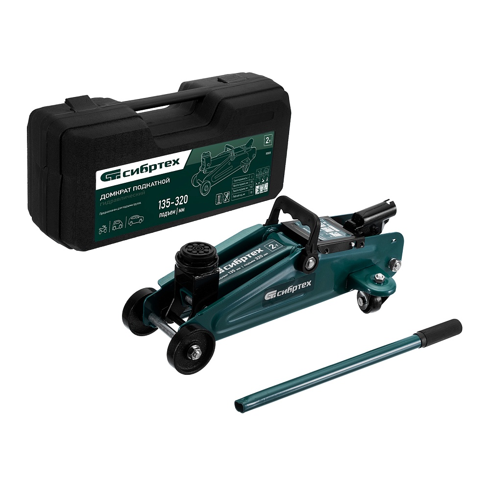 Гидравлический подкатной домкрат Сибртех 50835, поставляющийся в пластиковом кейсе, с высотой подхвата 135 мм, предназначен для подъема грузов массой до 2 т на высоту до 330 мм. Применяется для обслуживания автомобилей со стандартным клиренсом. Компактный домкрат подходит для самостоятельного использования автовладельцами.