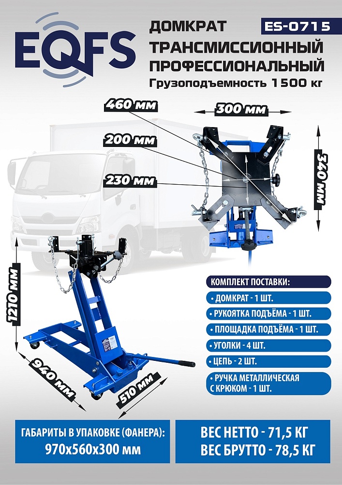 Особенности конструкции ES-0715 домкрат трансмиссионный 1.5 т :