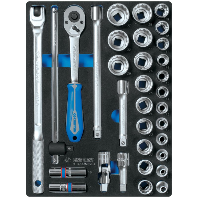 KING TONY Набор торцевых головок 1/2" с принадлежностями, двенадцатигранные, ложемент, 33 предмета KING TONY 9-4233MRV04 купить в Екатеринбурге цена ✅ - Все для СТО