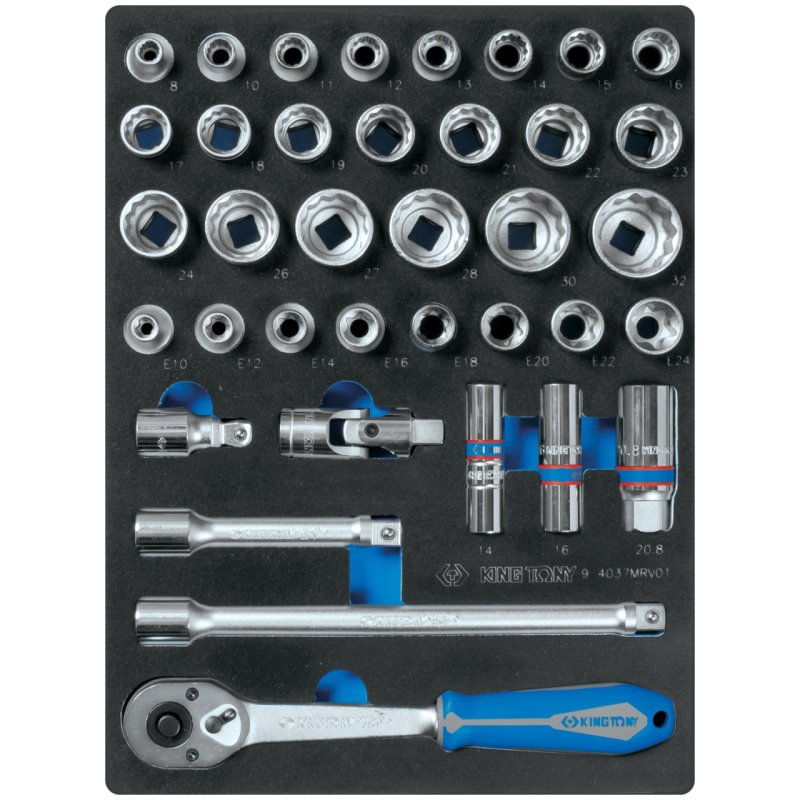 KING TONY Набор торцевых головок 1/2" с принадлежностями, двенадцатигранные, ложемент, 37 предметов KING TONY 9-4037MRV01 купить в Екатеринбурге цена ✅ - Все для СТО