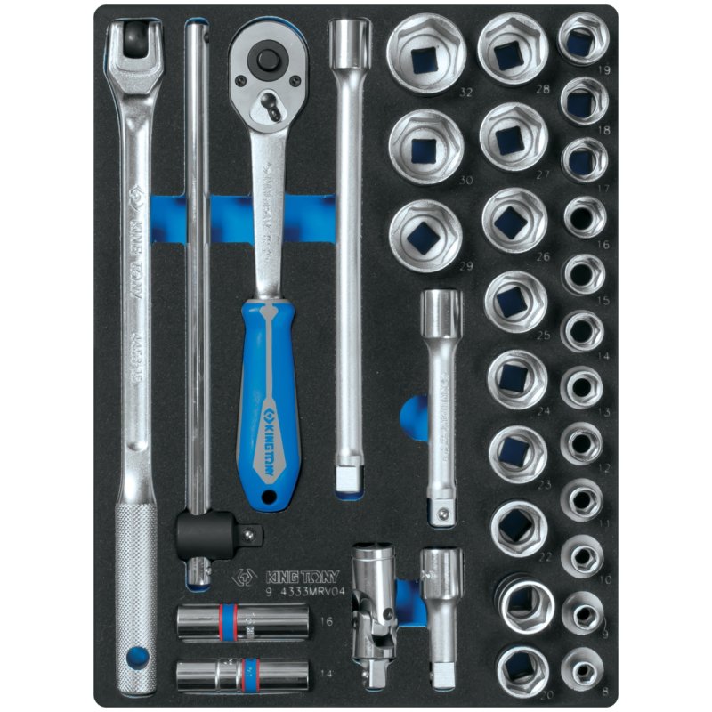 KING TONY Набор торцевых головок 1/2" с принадлежностями, шестигранные, ложемент, 33 предмета KING TONY 9-4333MRV04 купить в Екатеринбурге цена ✅ - Все для СТО