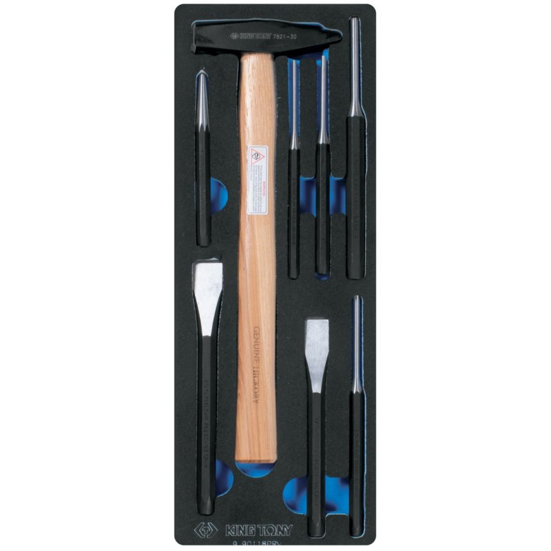 KING TONY Набор зубил, выколоток, кернеров с молотком, ложемент, 8 предметов KING TONY 9-90118PRV