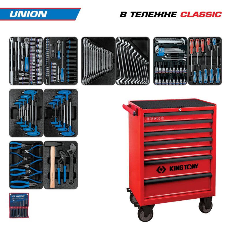 Набор инструментов 173 предмета, "UNION", в красной тележке KING TONY 934-000MR купить в Екатеринбурге цена ✅ - Все для СТО