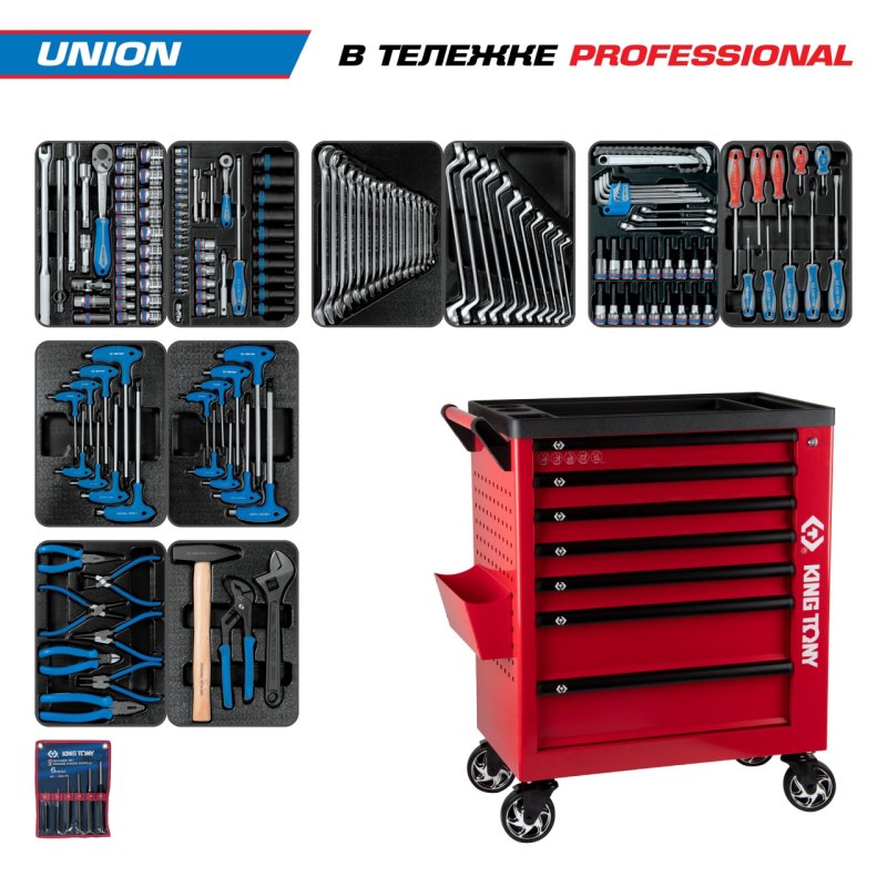 Набор инструментов 173 предмета, "UNION", в красной тележке KING TONY 9G38-000MRR купить в Екатеринбурге цена ✅ - Все для СТО