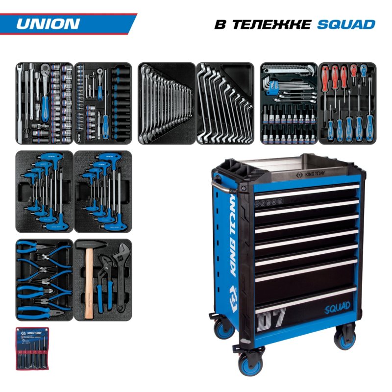 Набор инструментов 173 предмета, "UNION", в синей тележке KING TONY 9SQ31-000MR купить в Екатеринбурге цена ✅ - Все для СТО