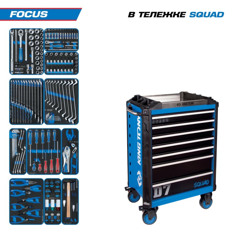 Набор инструментов 188 предметов, "FOCUS", в синей тележке KING TONY 9SQ31-188MRV купить в Екатеринбурге цена ✅ - Все для СТО