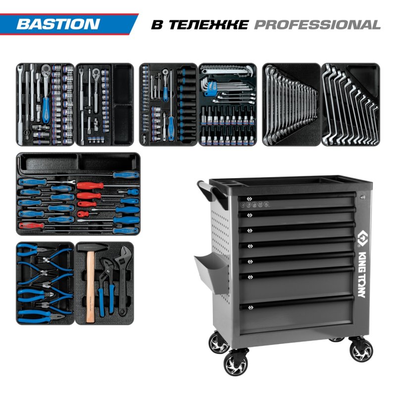 Набор инструментов 204 предмета, "BASTION", в серой тележке KING TONY 9G38-100MRG купить в Екатеринбурге цена ✅ - Все для СТО