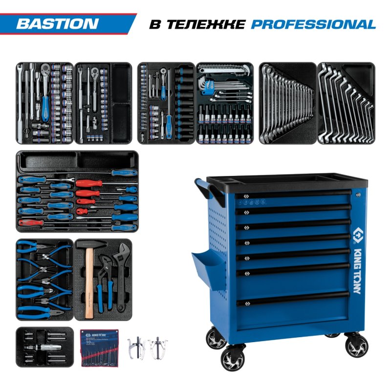 Набор инструментов 204 предмета, "BASTION", в синей тележке KING TONY 9G38-100MRB купить в Екатеринбурге цена ✅ - Все для СТО