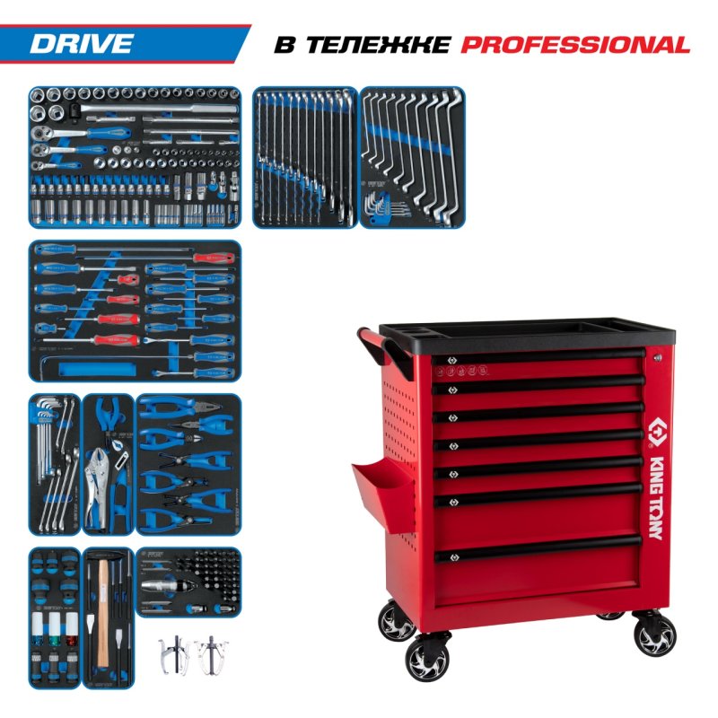 Набор инструментов 251 предмет, "DRIVE", в красной тележке KING TONY 9G38-251MRVR купить в Екатеринбурге цена ✅ - Все для СТО
