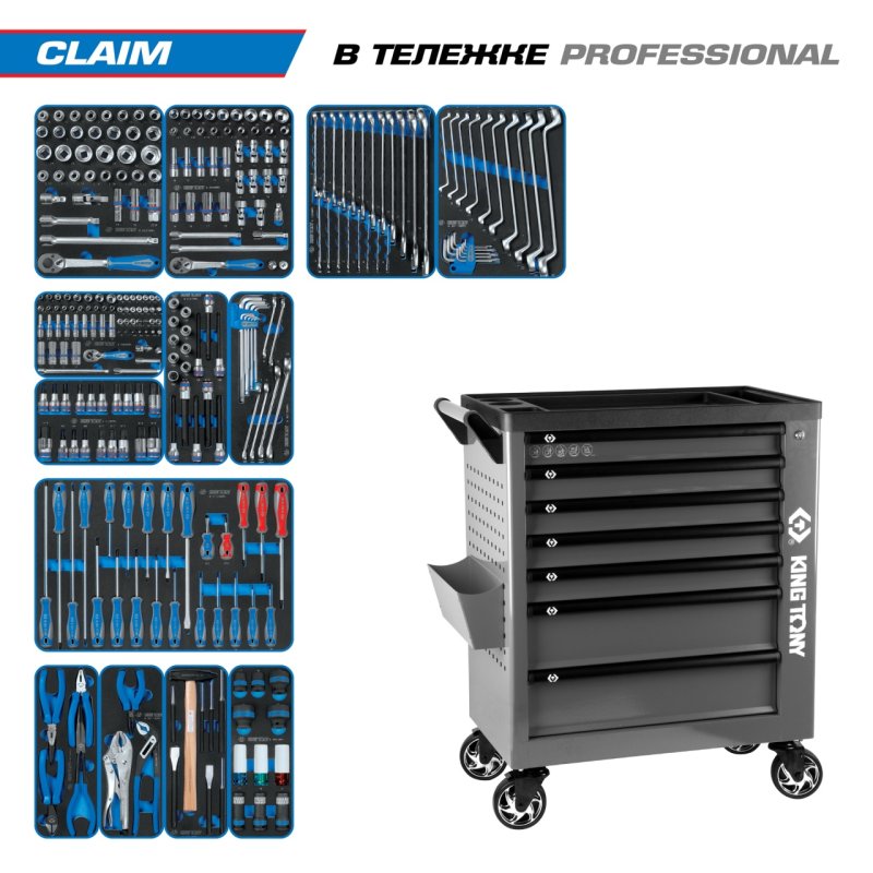 Набор инструментов 286 предметов, "CLAIM", в серой тележке KING TONY 9G38-286MRVG купить в Екатеринбурге цена ✅ - Все для СТО