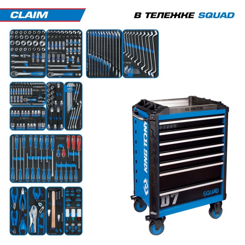 Набор инструментов 286 предметов, "CLAIM", в синей тележке KING TONY 9SQ31-286MRV купить в Екатеринбурге цена ✅ - Все для СТО