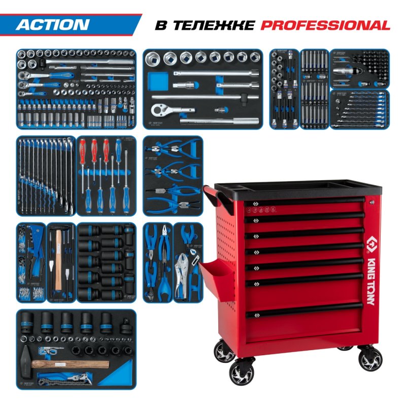 Набор инструментов 327 предметов, "ACTION", в красной тележке KING TONY 9G38-327MRVR купить в Екатеринбурге цена ✅ - Все для СТО