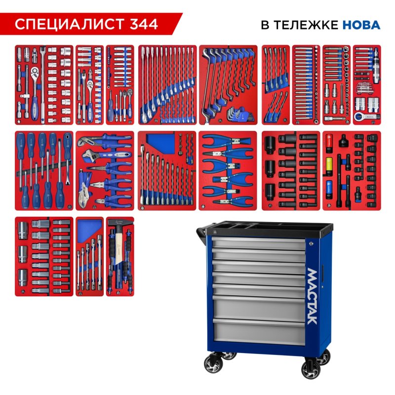 Набор инструментов 344 предмета, "СПЕЦИАЛИСТ 344", в синей тележке МАСТАК 50-07344B купить в Екатеринбурге цена ✅ - Все для СТО
