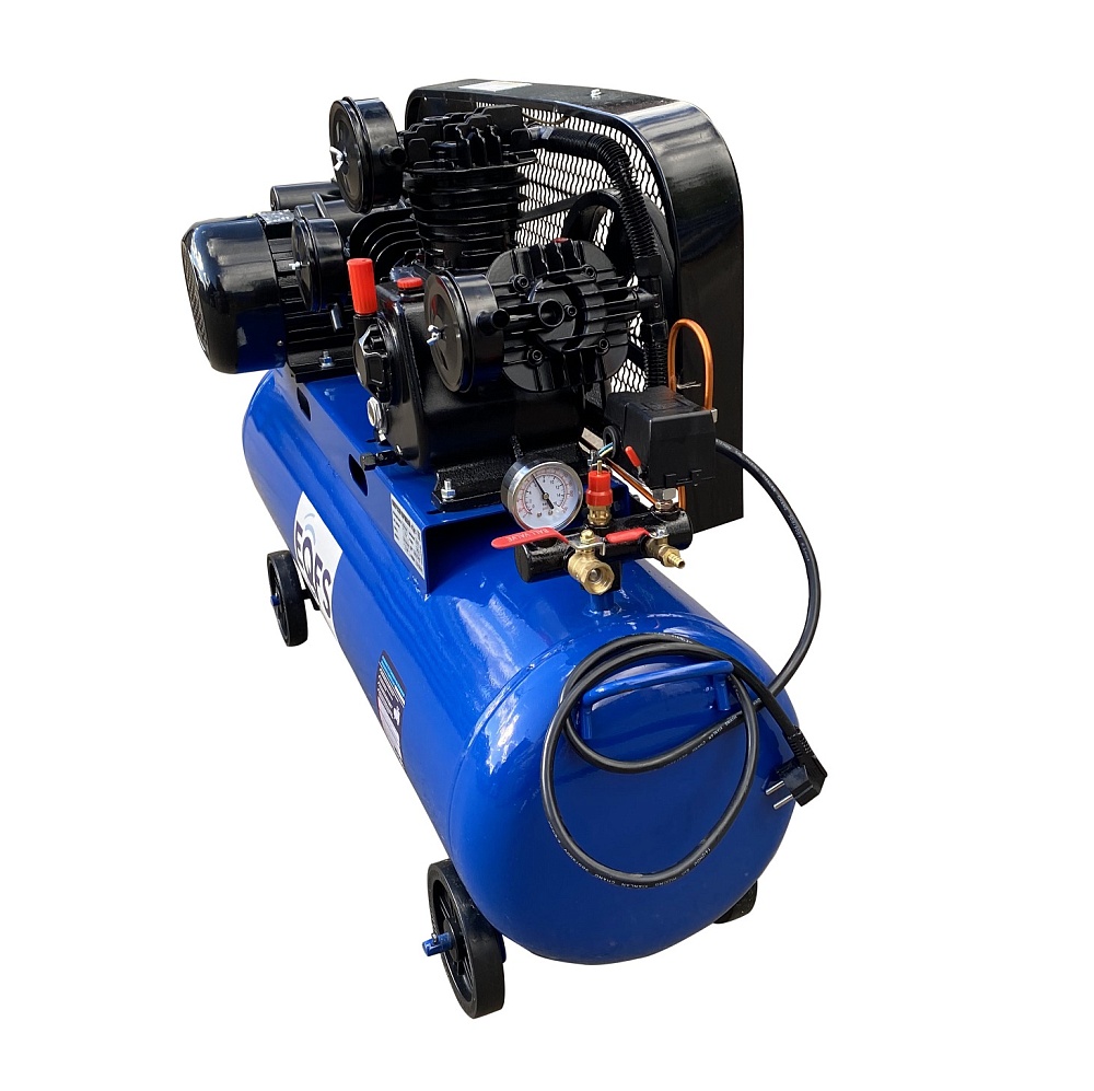 Компрессор воздушный, передвижной, поршневой, масляный, трёхцилиндровый. Быстро набирает давления. Трёхпоршневая головка двигателя уменьшает износ деталей и увеличивает срок службы. Ремённый привод — предохранят мотор от поломки. Идеальное решение для небольшой мастерской, шиномонтажа, автосервиса, гаража. Давление 8 Атм. Производительность 460 л/мин. Мощность 3 кВт. Напряжение 220В. Ёмкость ресивера 100 л. Гарантия 12 месяцев. Для корректной эксплуатации необходимо обеспечение мощности питающей сети с номинальным током 25А и напряжение 220V.
