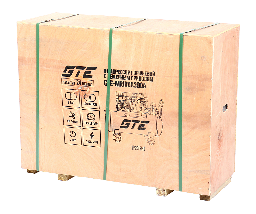 GTE-MR100A300A Компрессор поршневой ременной 380В 300л/мин. ресивер-100л одноступенчатый