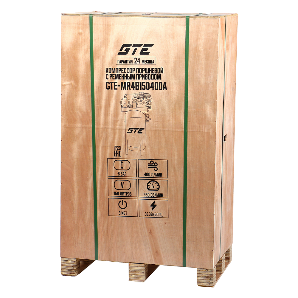 GTE-MR4B150400A Компрессор поршневой ременной 380В 400л/мин. ресивер-150л вертикальный