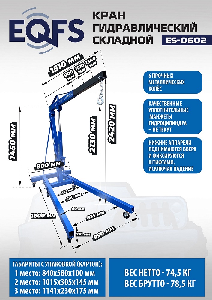 ES-0602 Кран гаражный, 2 т купить в Екатеринбурге цена ✅ - Все для СТО
