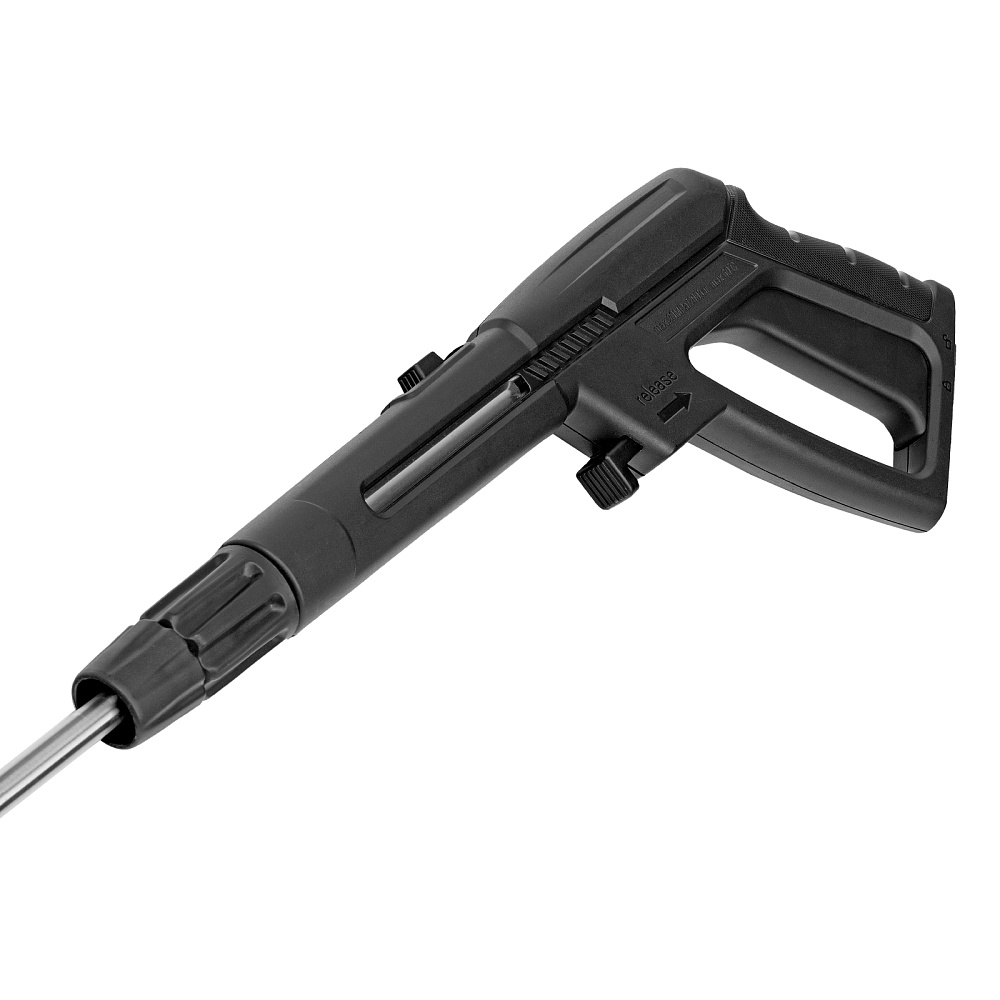 Мойка высокого давления, Барабан для шланга (установлен), Шланг высокого давления (установлен), Пистолет, Удлинитель пистолета, Сменные сопла 3 шт, Пеногенератор с бачком для моющего средства, Входной штуцер с фильтром, Быстросъемный коннектор шланга, кронштейн-держатель пистолета, Кронштей сетевого кабеля, Игла для прочистки сопла, Комплект крепежа, Инструкция с гарантийным талоном
