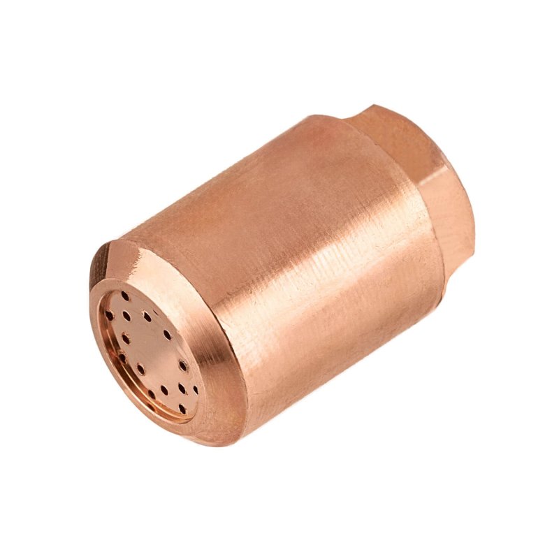 Сетчатый мундштук №6П для работы с горелкой ГЗУ-06. Мундштук выполнен из меди, а крепление мундштука к наконечнику из латуни. Мундштук крепится внутренней резьбой М10х1 на штуцер наконечника. Мундштук №6П используется для работы на пропан-бутане или метане. Медный мундштук с отверстиями по диаметру обеспечивает вытянутый факел рабочего пламени с максимальной температурой нагрева. Максимальная температура пламени на пропан-бутане достигает 2450°С.