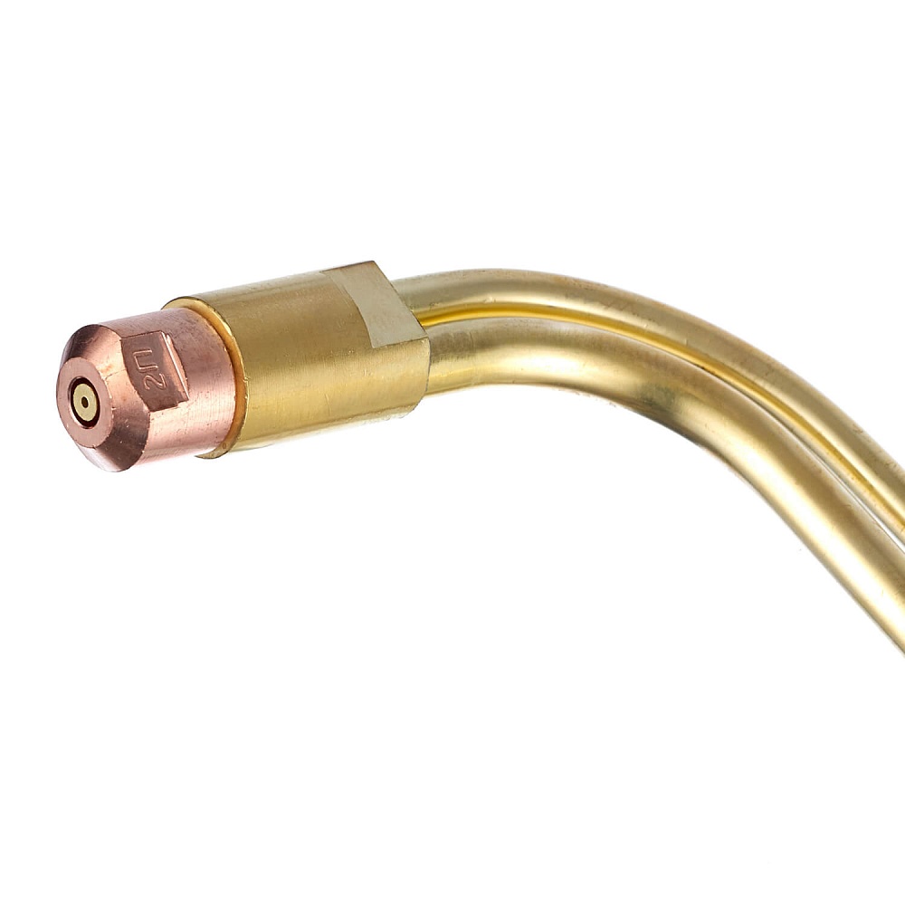 Наконечник для пропанового инжекторного резака Р3П – это сменный элемент для восстановления работоспособности резака. Поставляется в комплекте с внутренним латунным мундштуком №2 и наружным медным №2П. Угол наклона головки резака составляет 90°.