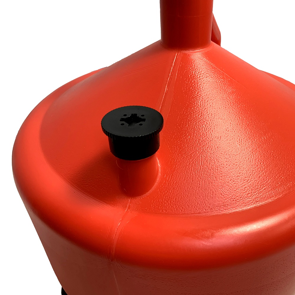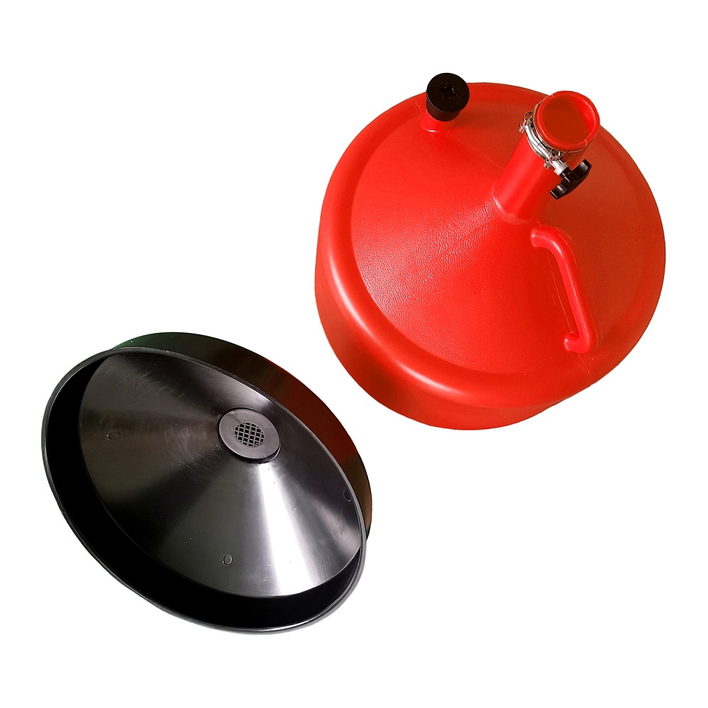 Изготовлена из плотного пластика и оснащена колесами для удобного перемещения. Маслоприемная воронка вместимостью 10 л укомплектована фильтром.