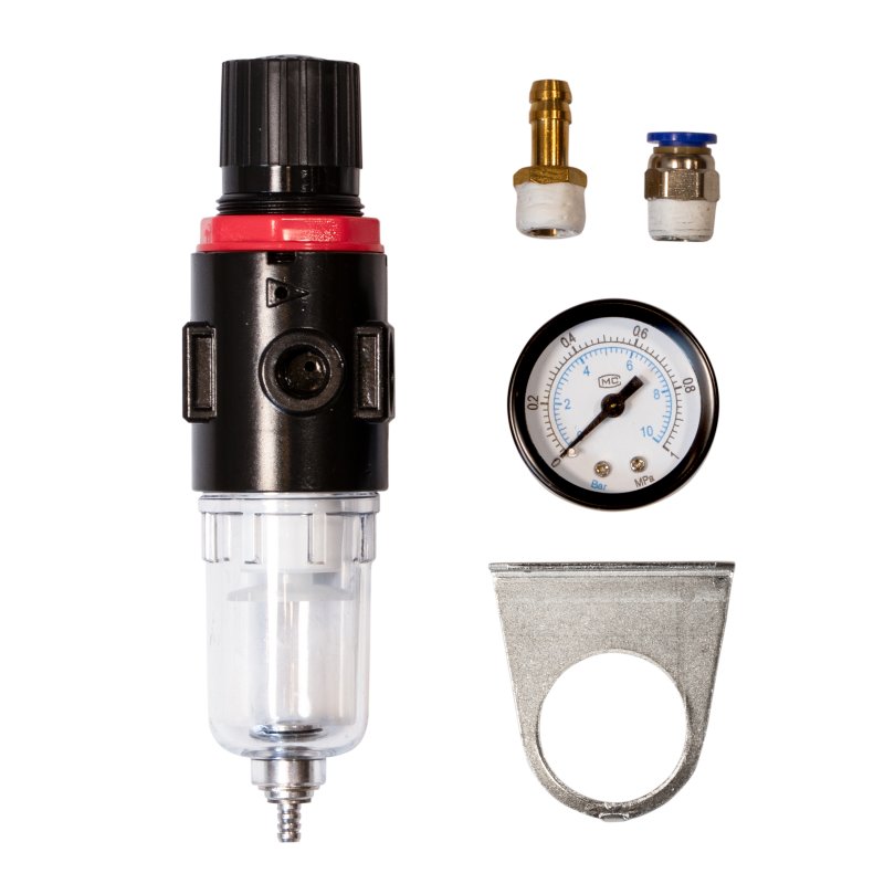 Фильтр-редуктор Aurora для аппаратов Airforce/Airhold - это воздушный фильтр-регулятор, который используют для установки на аппараты плазменной резки. Устройство подготавливает воздух подаваемый компрессором и очищает его от влаги и частиц масла. Фильтр-регулятор оснащён манометром и рукояткой управления давлением.
