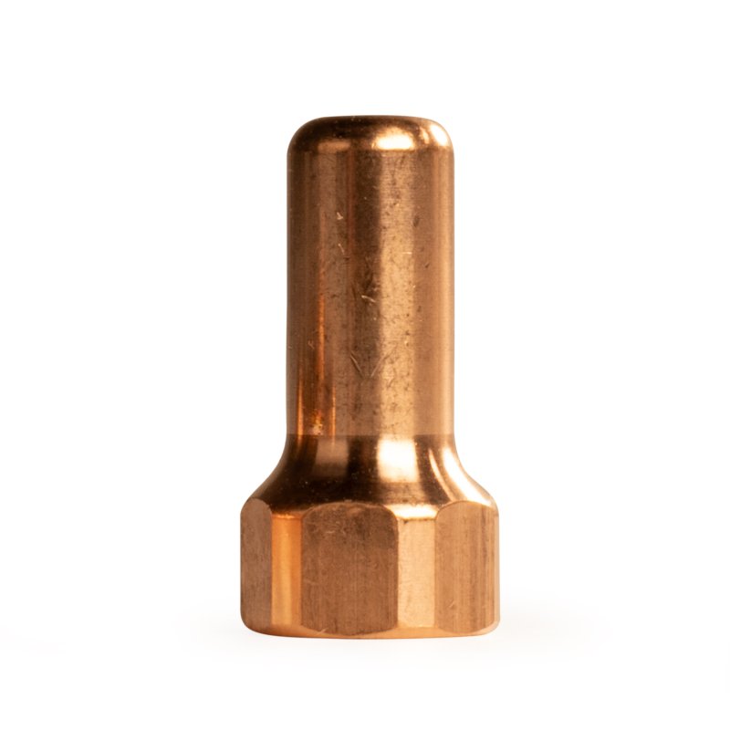 Катод - расходная часть плазмотрона. Оснастку изготавливают из сплава меди и латуни. Данный сплав обладает отличными показателями токопроводимости, высокими прочностными характеристиками, а так же способствует лучшему теплоотводу. Чаще всего для работы в нейтральных плазмообразующих средах в качестве сердечника электрода используют вольфрам, в окислительных средах применяют катоды из циркония или гафния.