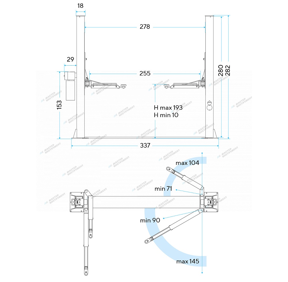 Подъемник двухстоечный 4 т с нижней синхронизацией, H=2,8 м, 220 В, синий . STX40TT_220 купить в Екатеринбурге цена ✅ - Все для СТО
