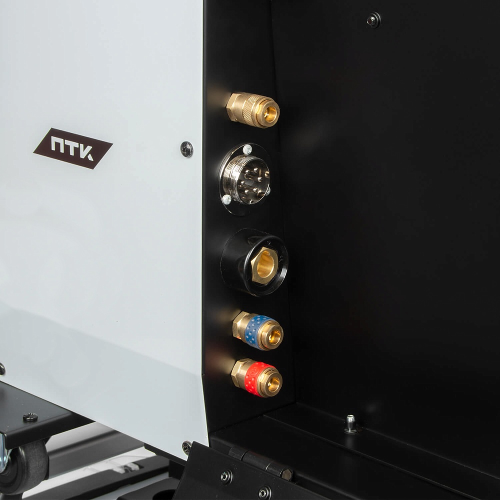 К аппарату ПТК HANKER MIG 350S EP LCD H23 можно подключить блок жидкостного охлаждения ПТК HANKER с объемом бака 5,5 литров. Функционал управления БЖО и горелкой с водяным охлаждением находится в ручных настройках инвертора (Machine, Cooling)