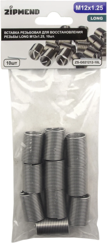 Вставка резьбовая для восстановления резьбы LONG M12 х 1.25, 10шт., ZIPMEND