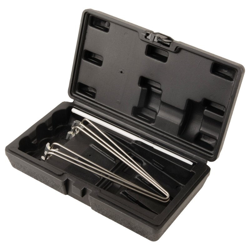 Набор предназначен для установки и снятия сухарей из стопорной канавки на штоках клапанов. Данная процедура применяется при рассухаривании головки блока цилиндров.