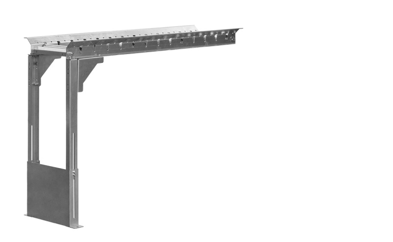 Каждая опора имеет 2 комплекта направляющих, для изменения высоты рольганга (высоты рольганга - от пола до рабочей поверхности роликов):