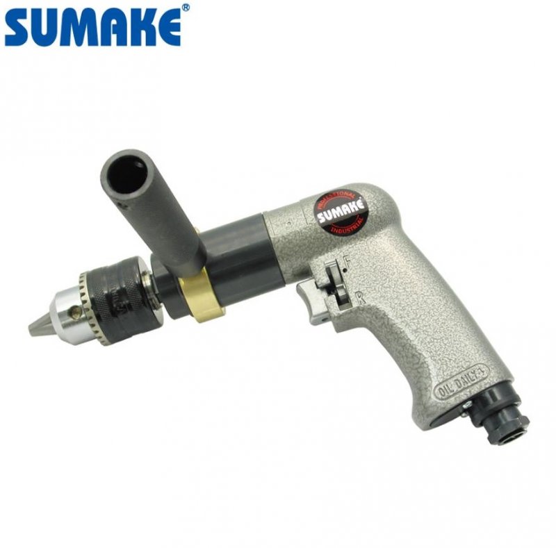 Пневматический дрель реверсивная профессиональная. Максимальное сверло – 13мм ( ?”). Скорость свободного вращения – 500 об/мин. Полностью металлический корпус. Для эксплуатации в слесарных мастерских, автосервисах, производственных и сборочных предприятиях. Реверс, малый вес.