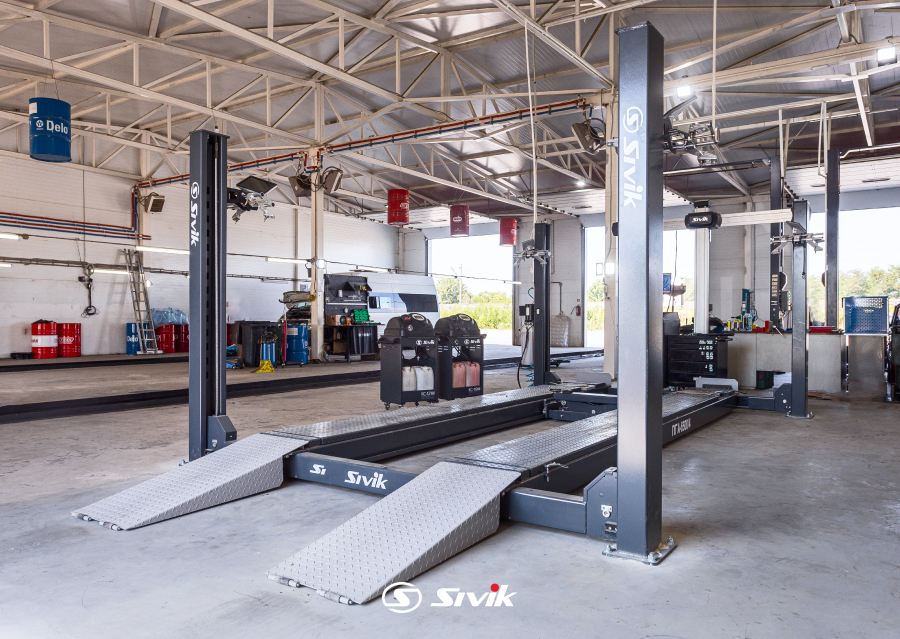 • Удлиненный четырехстоечный подъемник для легкового транспорта общей массой до 5,0 тонн