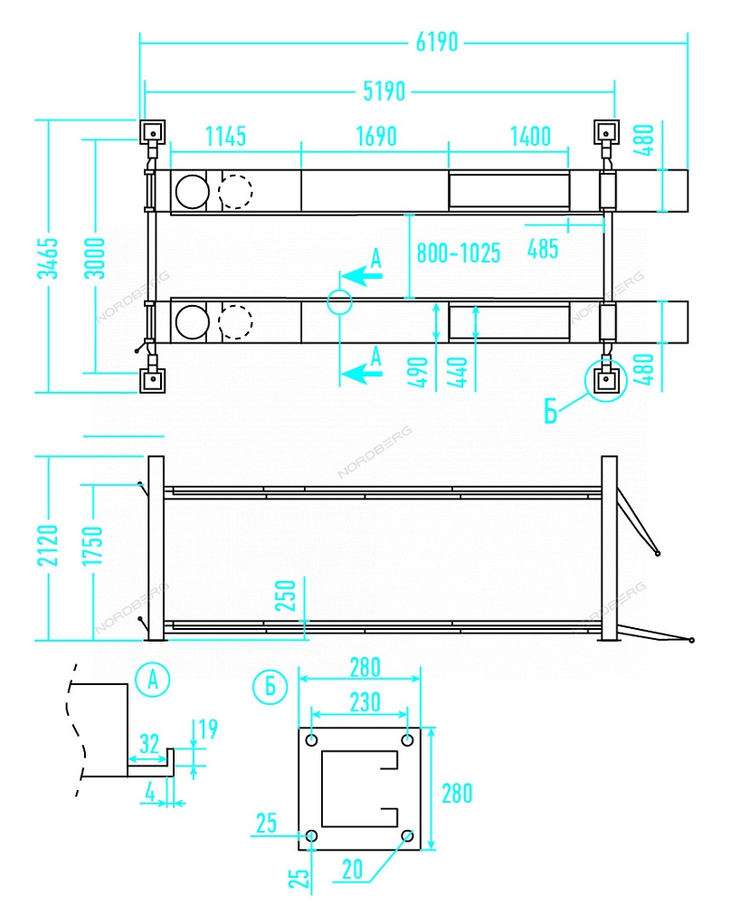 Подъемник четырехстоечный 5 т, без траверсы, для сход-развала, механическое снятие, синий NORDBERG 4450_MB купить в Екатеринбурге цена ✅ - Все для СТО