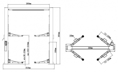 Высота подъемника 3854 мм