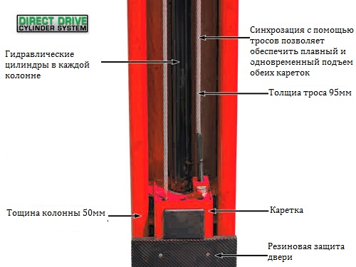 Двухстоечный электрогидравлический подъемник  г/п 4т Launch TLT-240SC с верхней синхронизацией и  симметричным или ассиметричным расположение стоек по выбору пользователя.