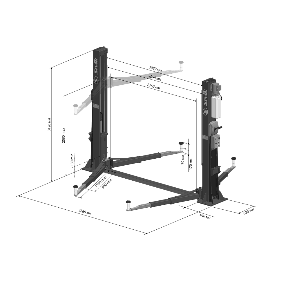 СИВИК ПГА-5000-НС Двухстоечный электрогидравлический подъемник г/п 5 тонн Серый купить в Екатеринбурге цена ✅ - Все для СТО