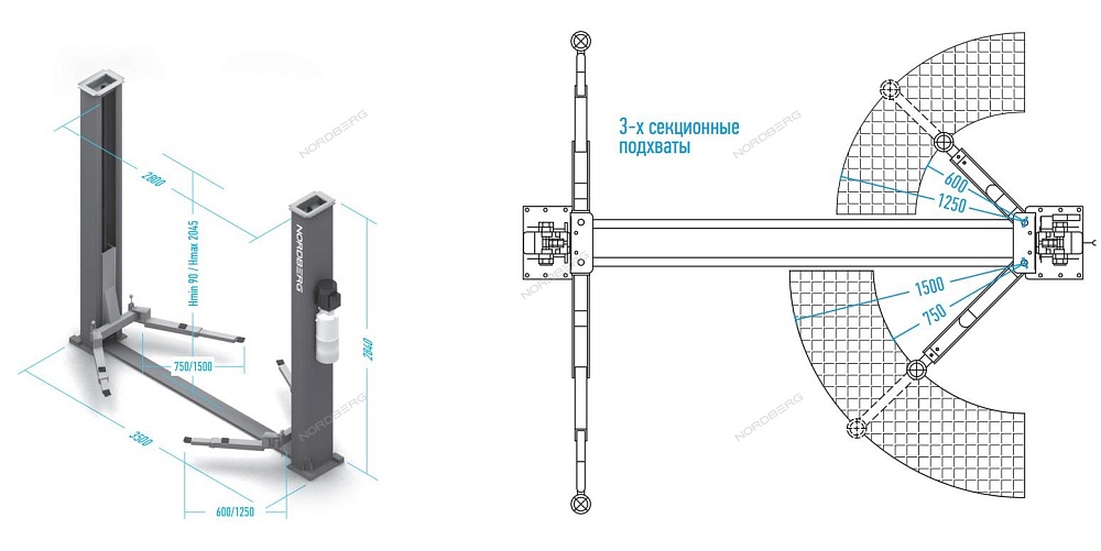 Подъемник двухстоечный 4,5 т, 380 В, синий NORDBERG N4125-4,5B