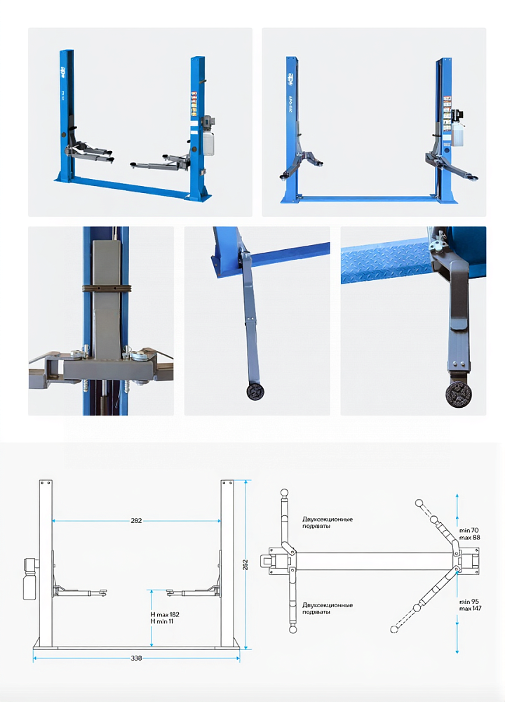 Подъемник двухстоечный 4 т с нижней синхронизацией, H=2,8 м, 220 В, синий APO APO-40C_220