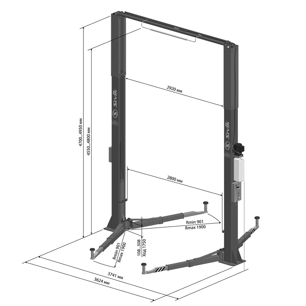 Подъемник двухстоечный Sivik ПГА-5000/1 LCV серый купить в Екатеринбурге цена ✅ - Все для СТО