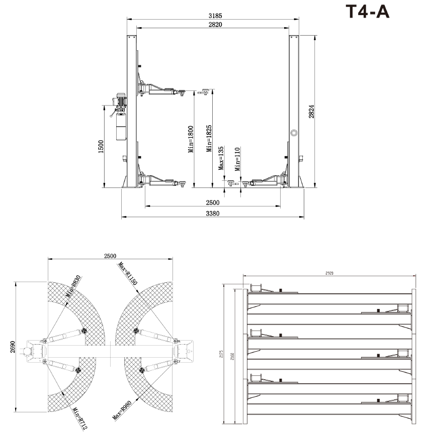 ATIS T4A Двухстоечный электрогидравлический подъемник 4 тонны купить в Екатеринбурге цена ✅ - Все для СТО