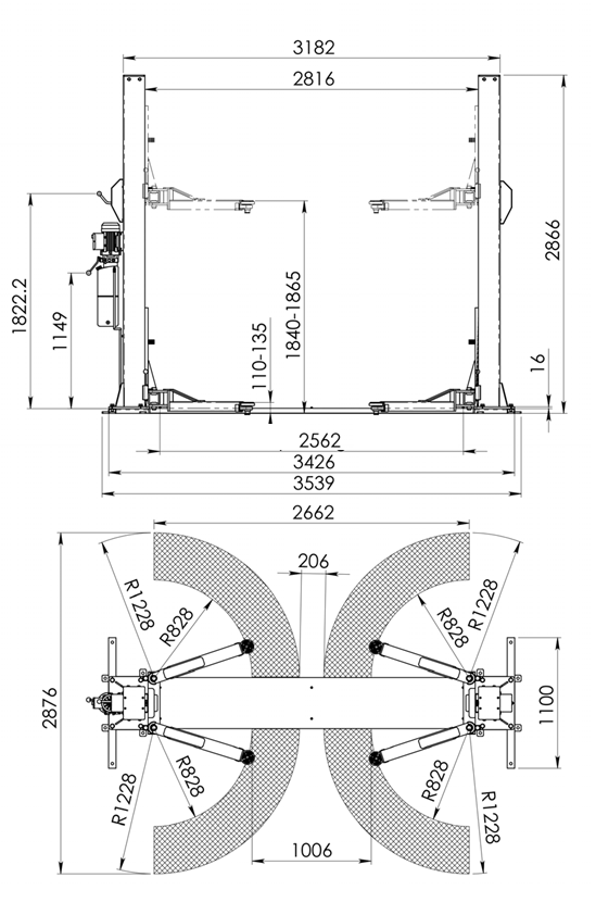Съем лап подъемника со стопоров – автоматический при опускании подъемника в крайнее нижнее положение.