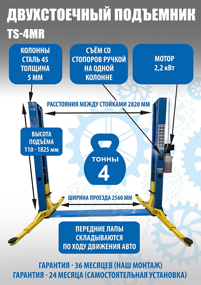TS-4MR Подъемник 2-хст. г/п 4 т съем-ручка+проставки (2025) (380 V ТВ) купить в Екатеринбурге цена ✅ - Все для СТО