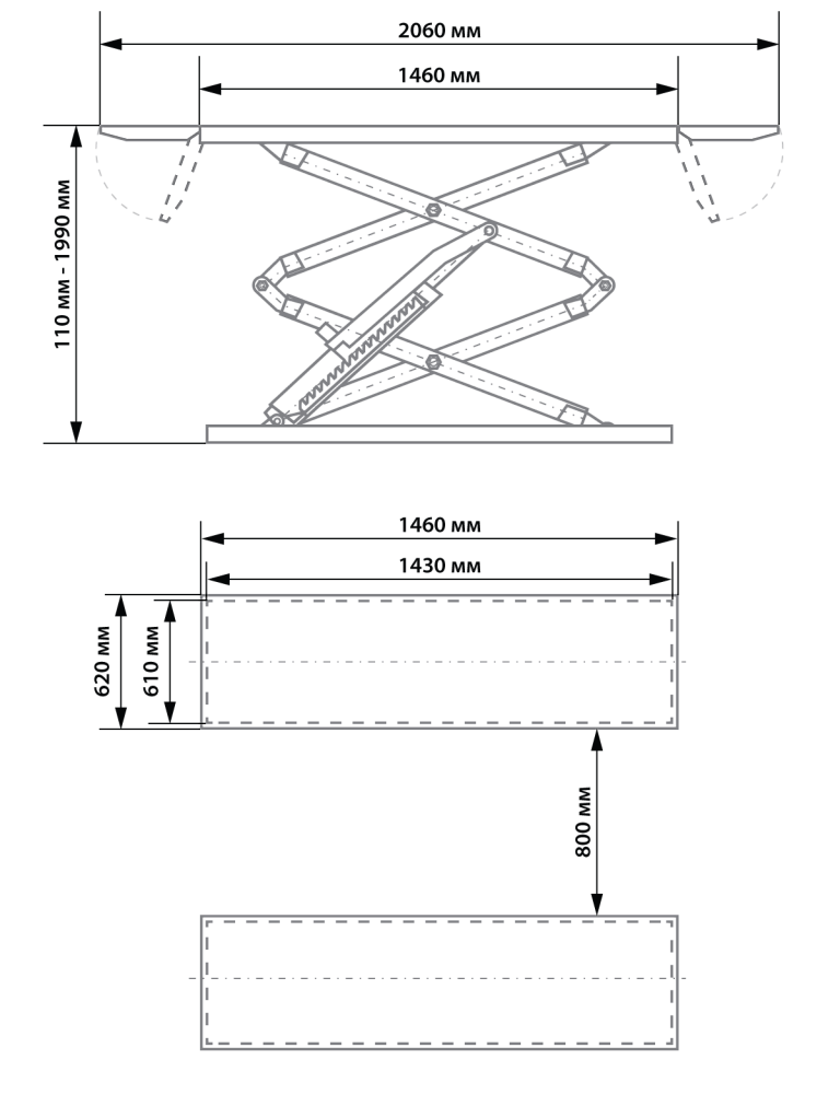 • Двойной гидравлический привод цилиндров, обеспечивает плавность подъема и опускания автомобиля