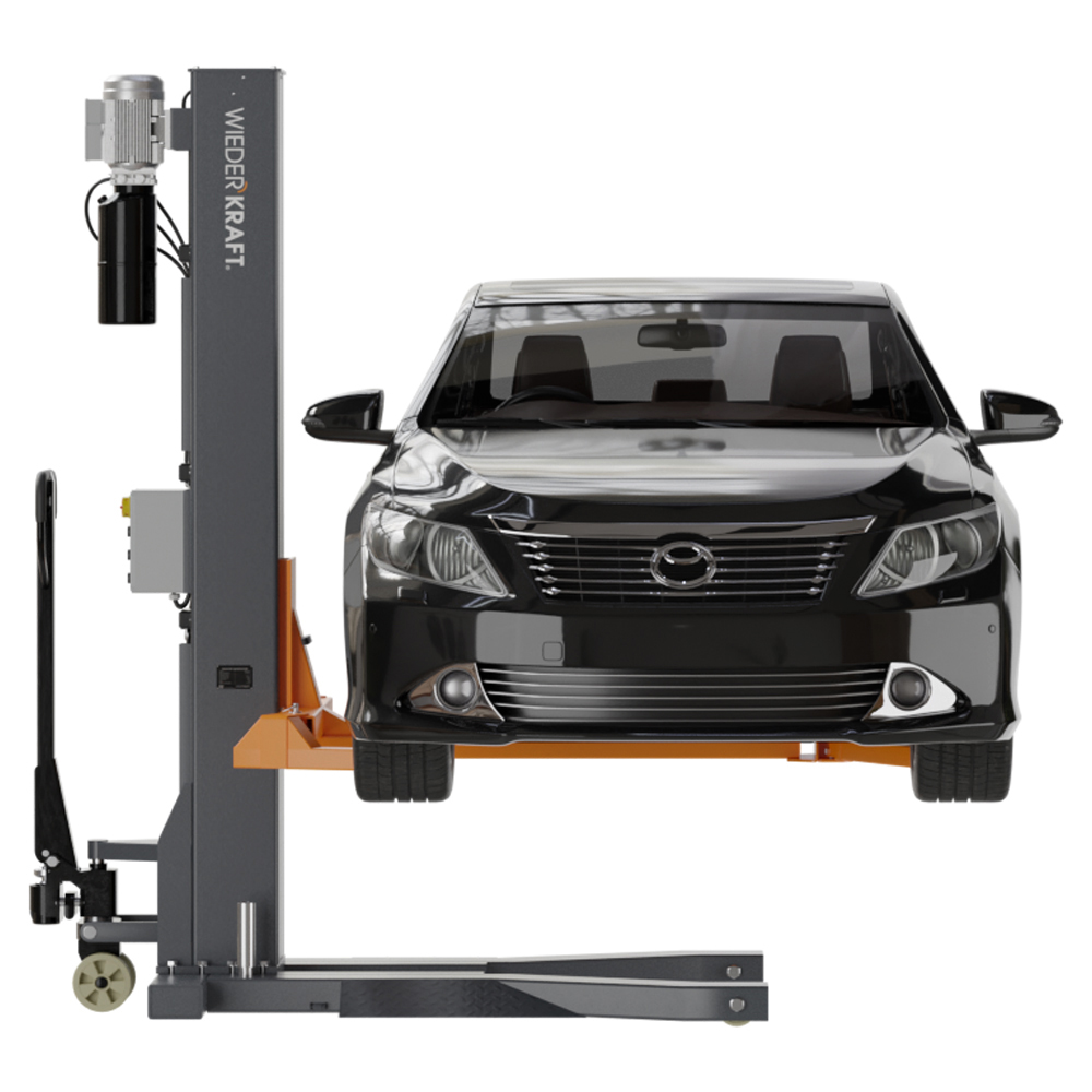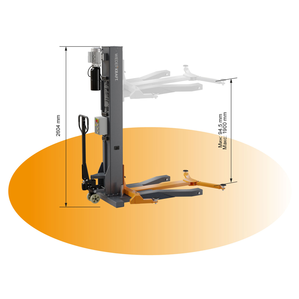 Мобильный одностоечный подъемник WiederKraft WDK-ML4030 грузоподъемностью 3000 кг. Отличается современной конфигурацией, а также продвинутой системой управления и защиты. Автоматическое управление подъемником осуществляется с центрального пульта. Устойчивая мобильная конструкция не требует фиксации к полу и позволяет использовать подъемник как на выставках, так и в автосервисе. Высота подъема составляет 1900 мм, что позволяет проводить обслуживание любого легкового транспорта. Проводка и узлы подъемника внутри колонны закрыты специальной шторкой, которая надежно защищает подвижные части от попадания пыли и грязи. Система безопасности подъемника представлена концевым ограничителем подъема, гидравлическим парашютным клапаном и системой защиты от перенапряжения.