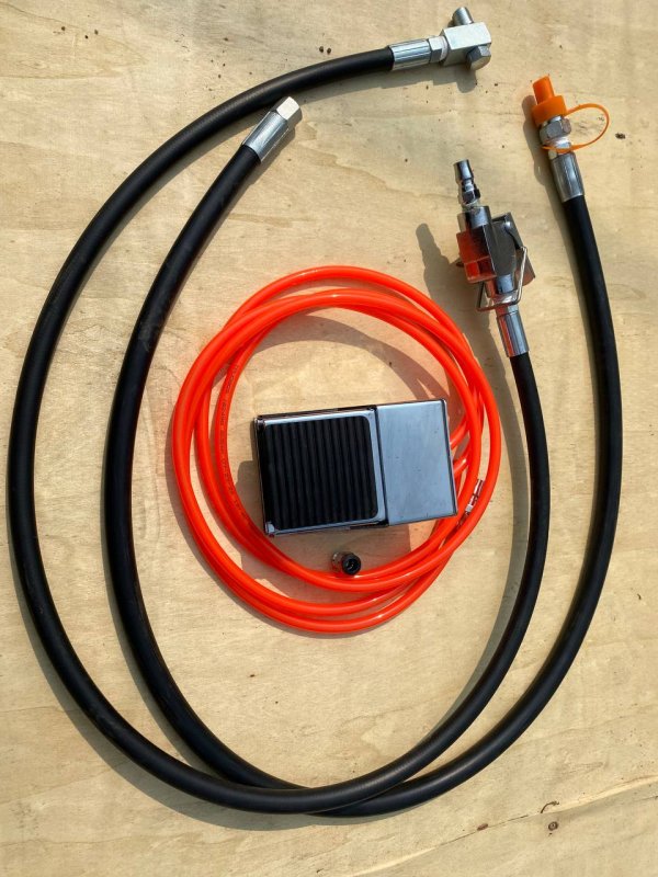 Пневмопедаль для пресса (комплект). Позволяет облегчить работу на прессе, освободив руки от управления прессом. Используется для прессов, у которых есть пневматический блок управления насосом.
