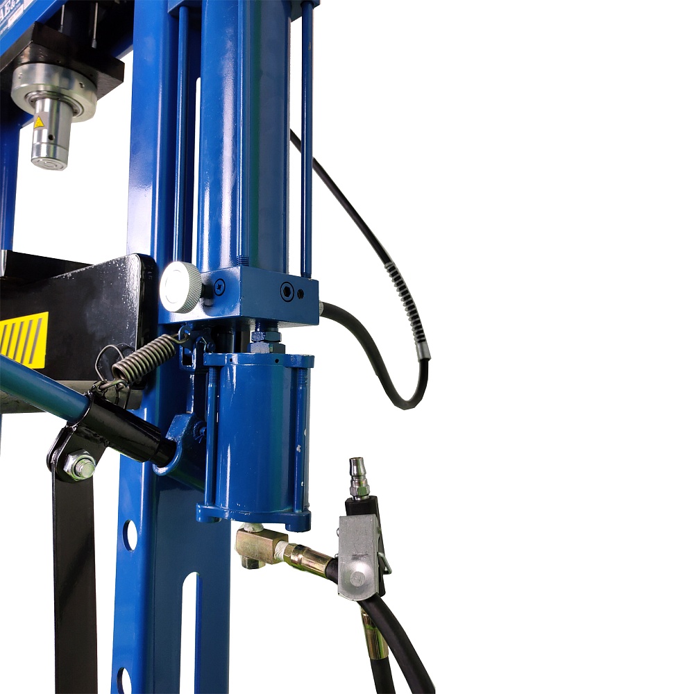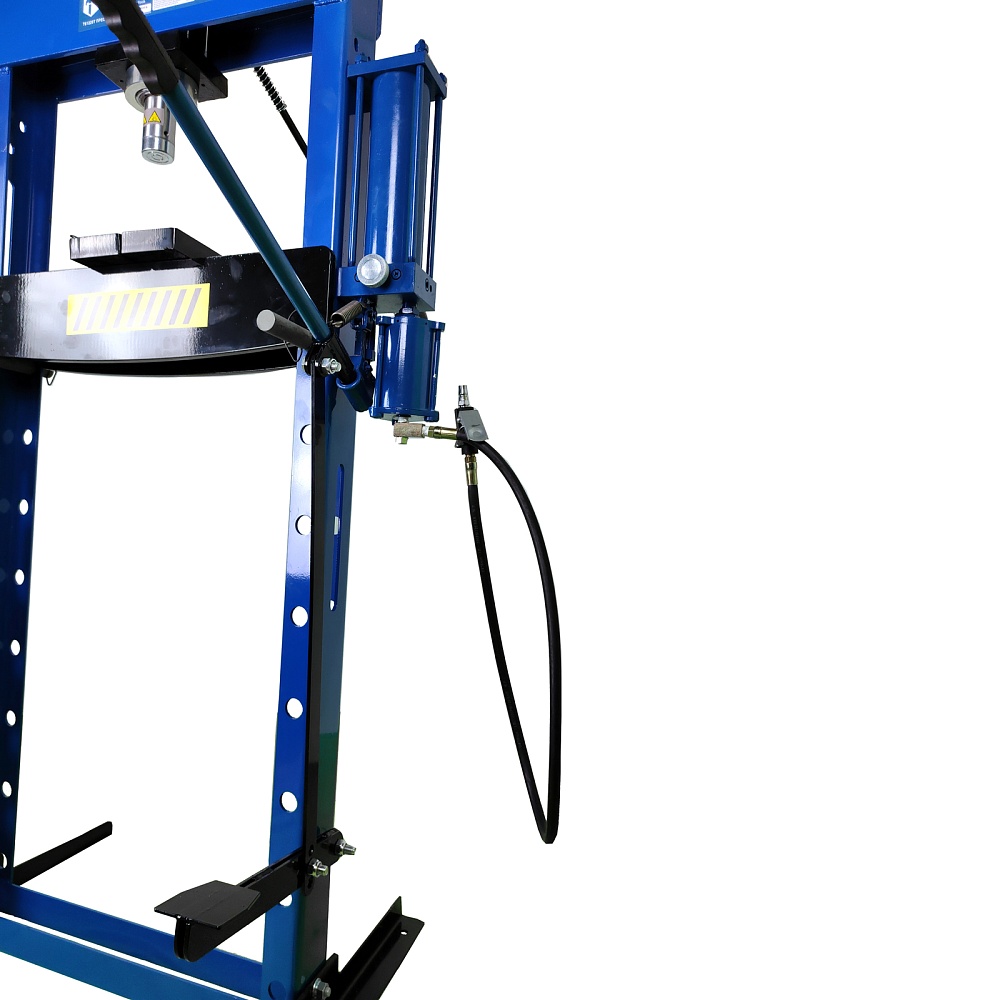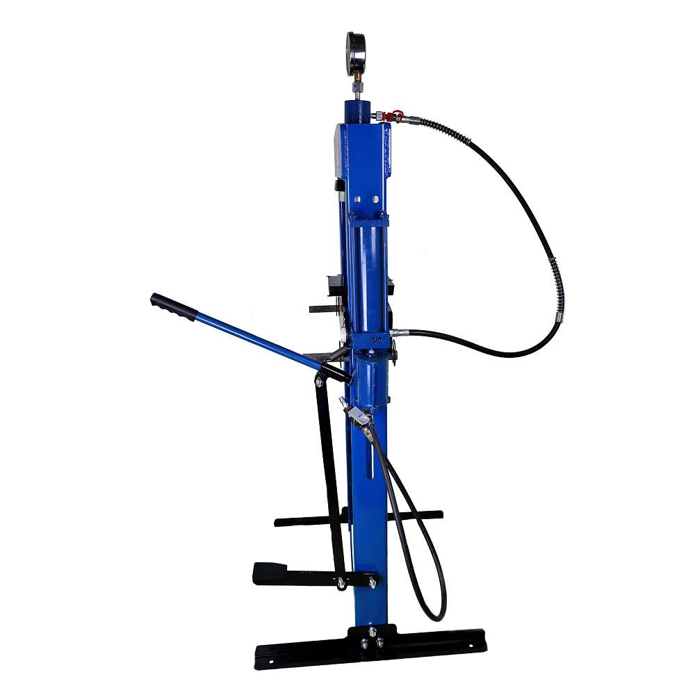 Данная модель отвечает всем требованиям современных российских автомастерских: она прочная и долговечная за счёт сварной рамы, для работы предусмотрено целых три способа эксплуатации – с накачкой рукоятью, ножной педалью или через пневматический рукав. Именно поэтому в случае неполадок или проблем с электроэнергией производство можно продолжать без затрат времени. Большой, легко читаемый манометр позволяет точно дозировать усилие.