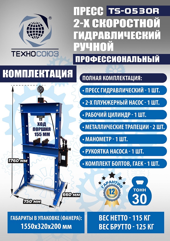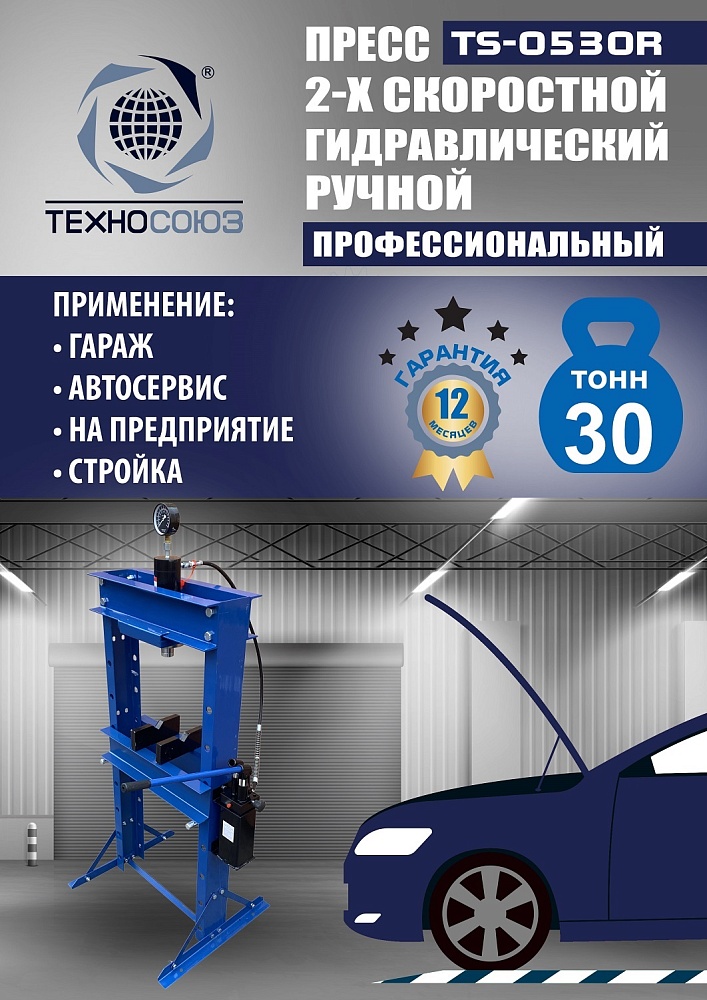 Гидравлический пресс 20 тонн ручной TS-0520R: точность и мощь для гаража